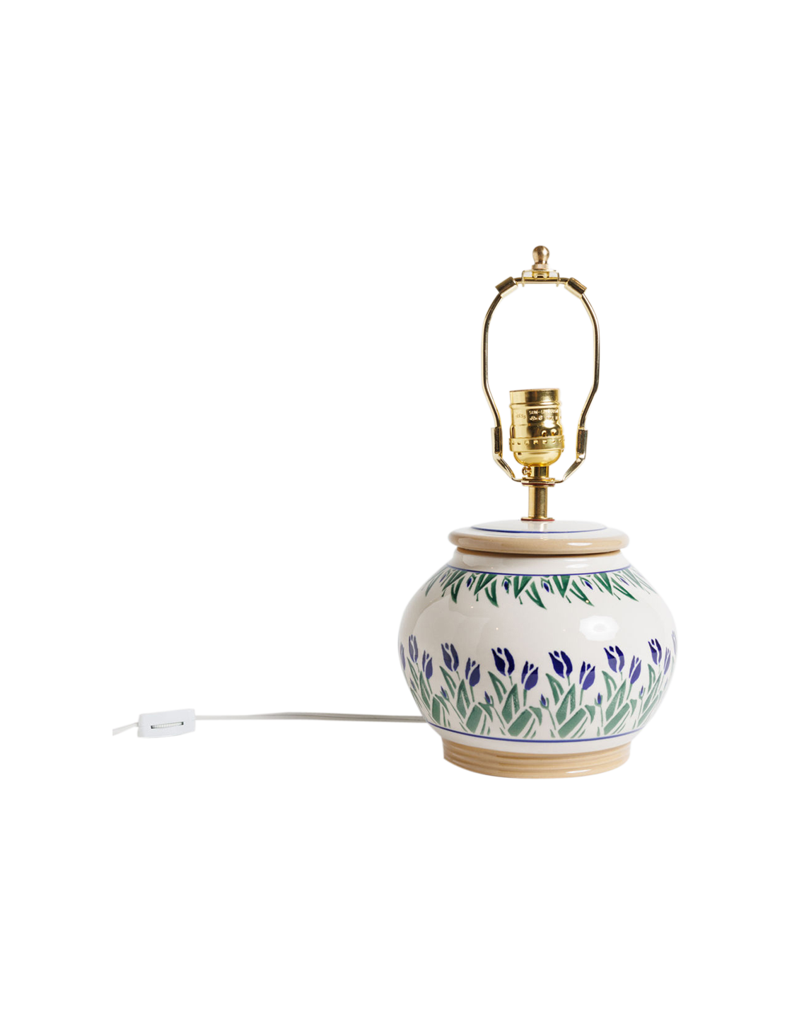dimensions ceramic base: 6" tall, ~6.5" wide; lamp harp: 6" tall, 3" wide