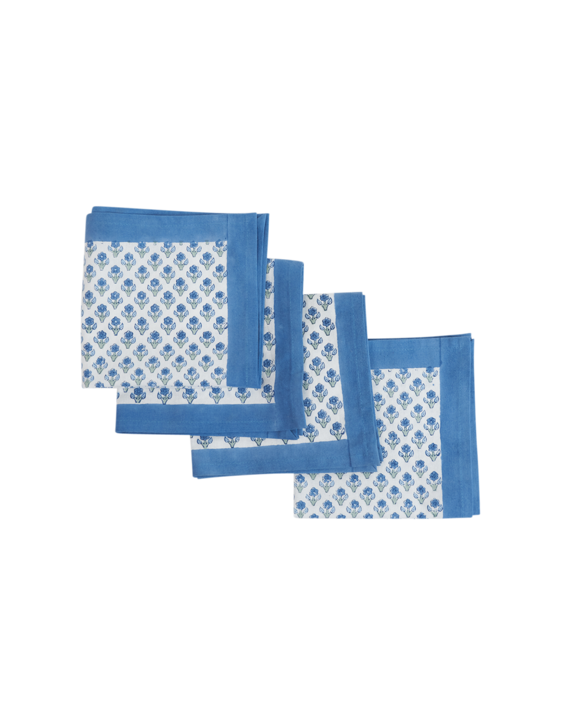 All meals should be extra festive, whether they're a stack of pancakes or a four-course dinner. These napkins are block-printed by hand in India in a denim blue floral print. Pair with our matching tablecloths.
