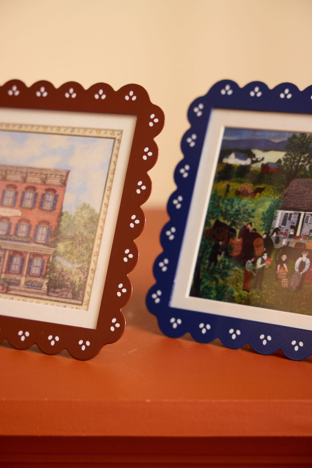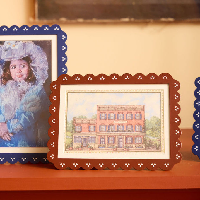 Keep your family, friends, and cherished memories close with this charming picture frame with scalloped edges. It can be displayed horizontally or vertically and includes fittings for easy hanging on your wall.