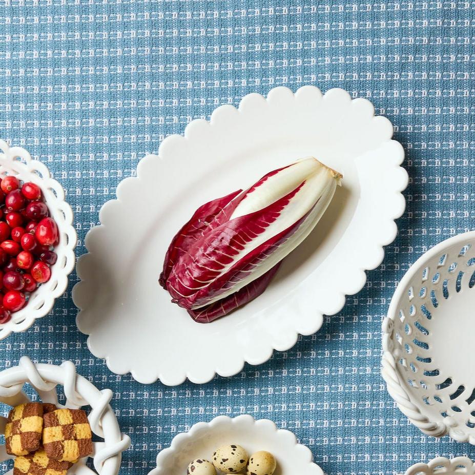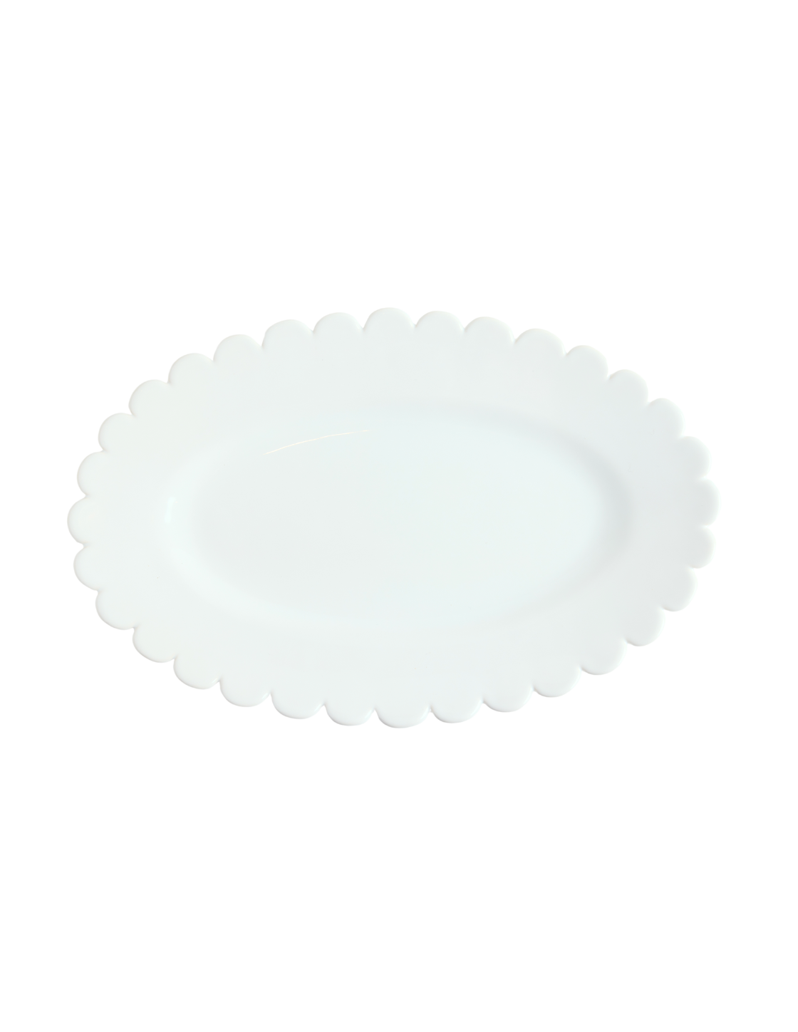 White scalloped serving dish uniquely handcrafted using 18th Century techniques in Malicorne sur Sarthe, France.