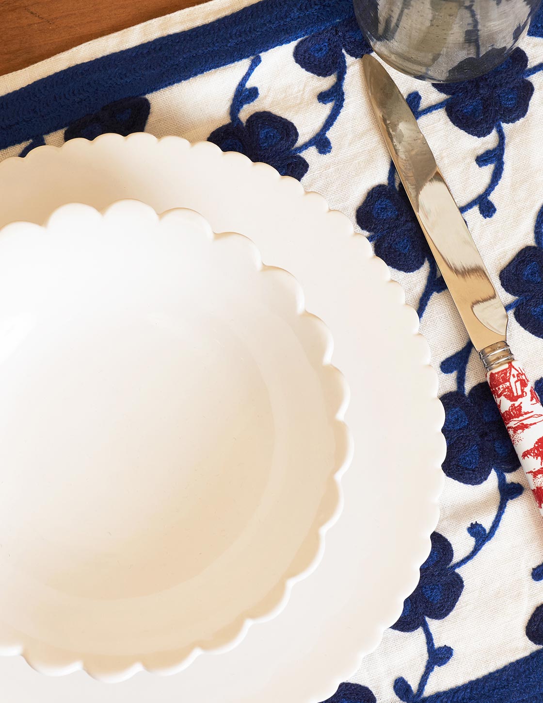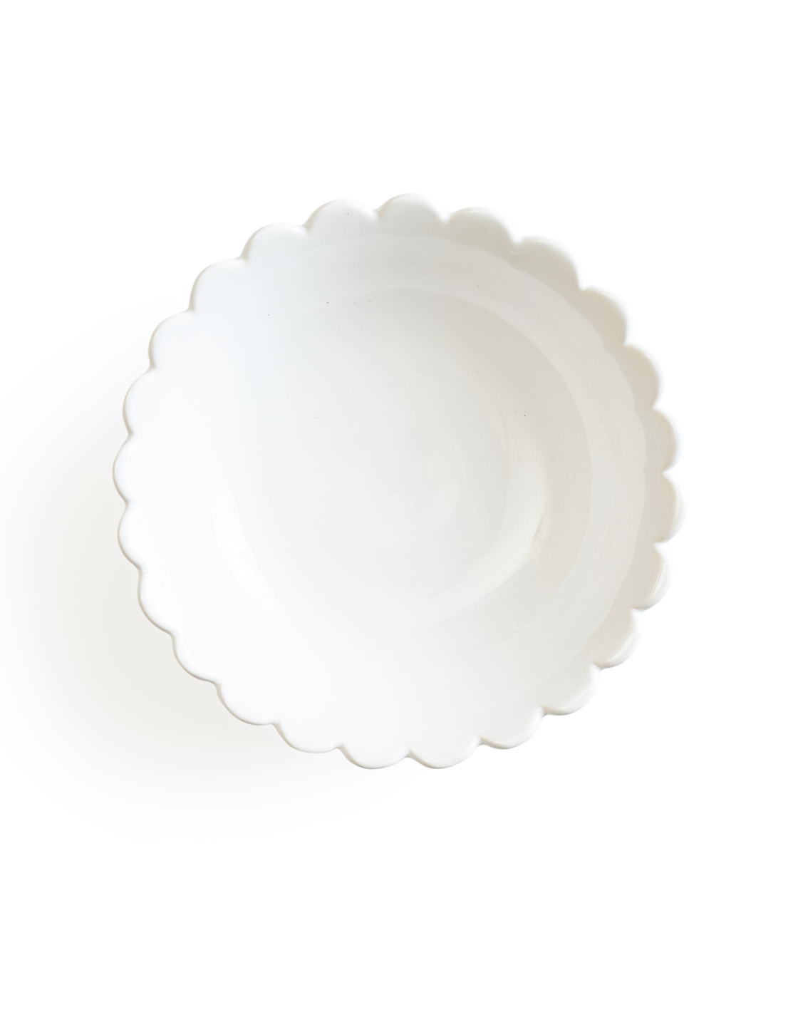 White scalloped bowl uniquely handcrafted using 18th Century techniques in Malicorne sur Sarthe, France.