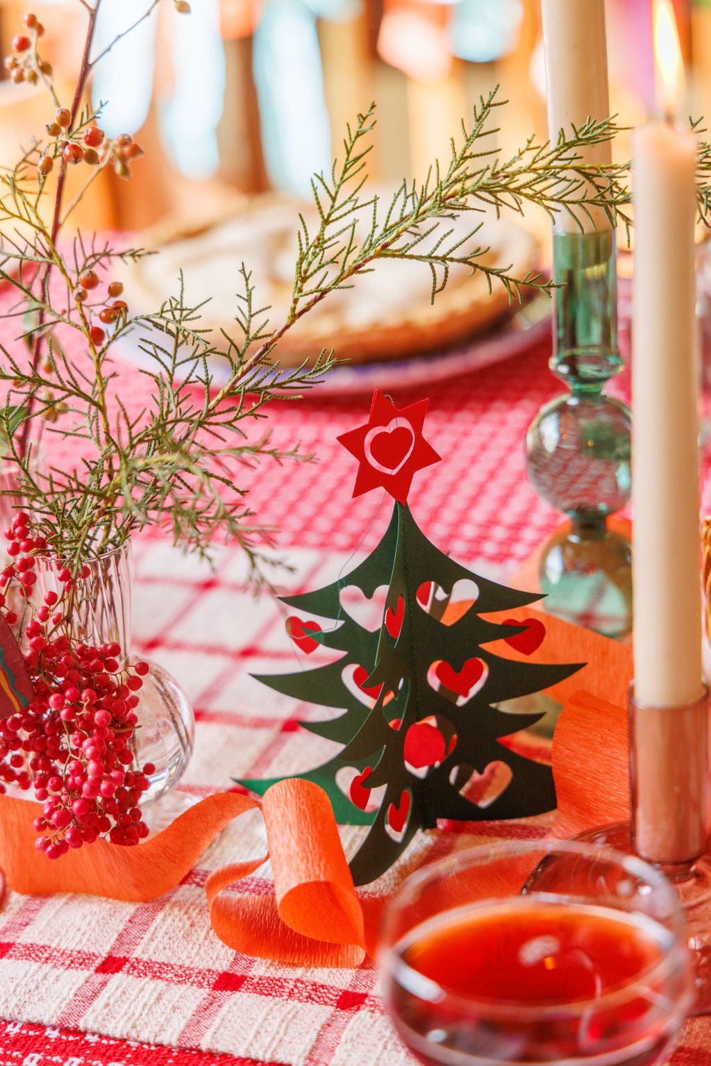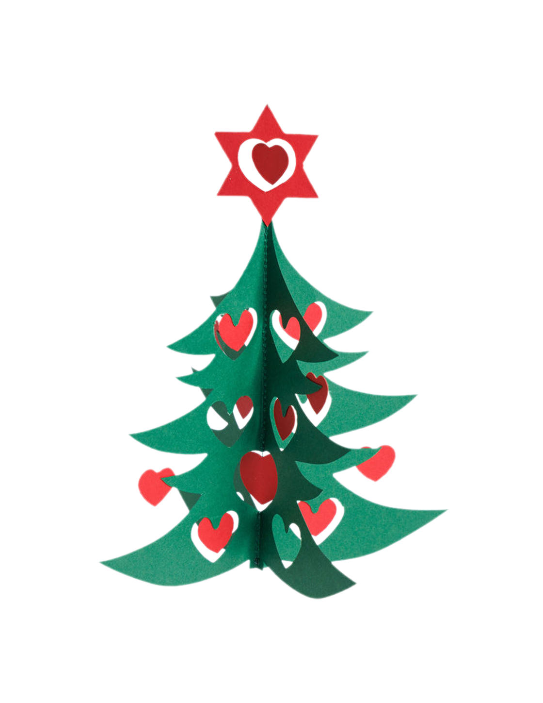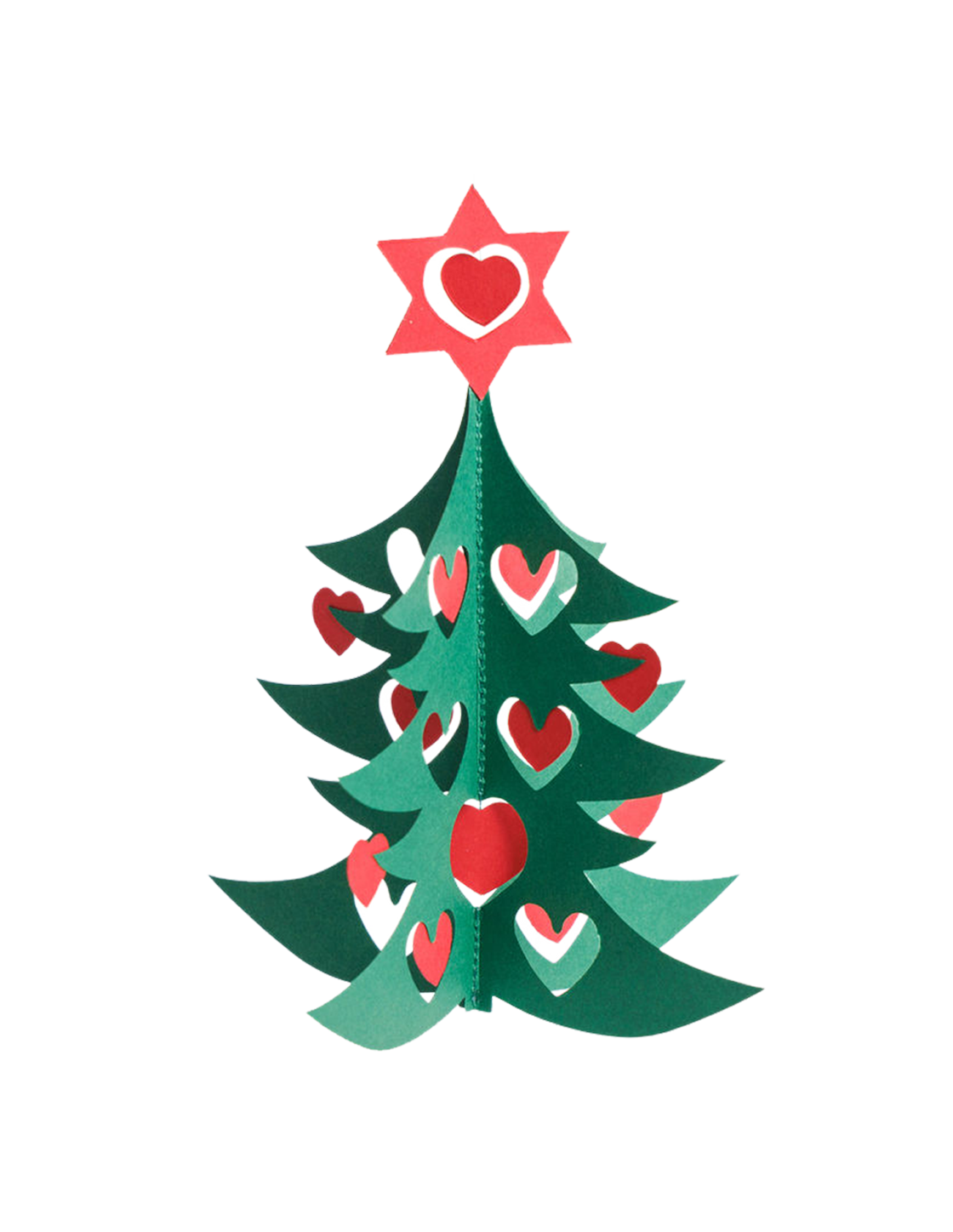 A beautifully crafted paper mobile featuring a festive tree adorned with charming hearts.