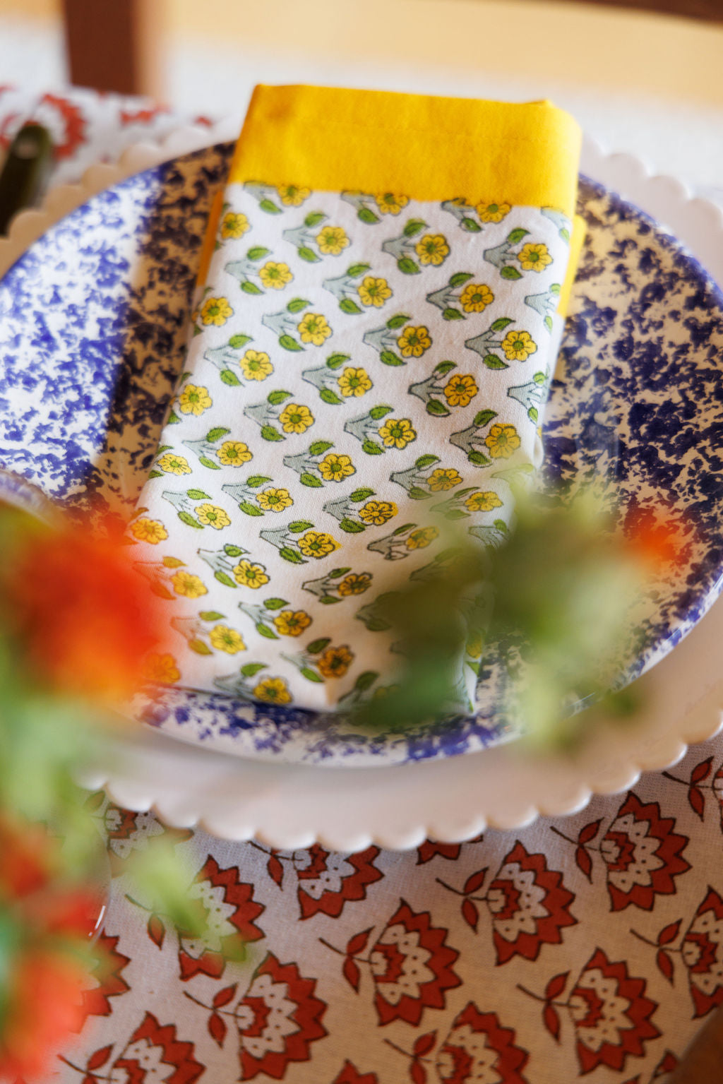 All meals should be extra festive, whether they're a stack of pancakes or a four-course dinner. These napkins are block-printed by hand in India in colorful floral prints. Pair with our matching tablecloths.