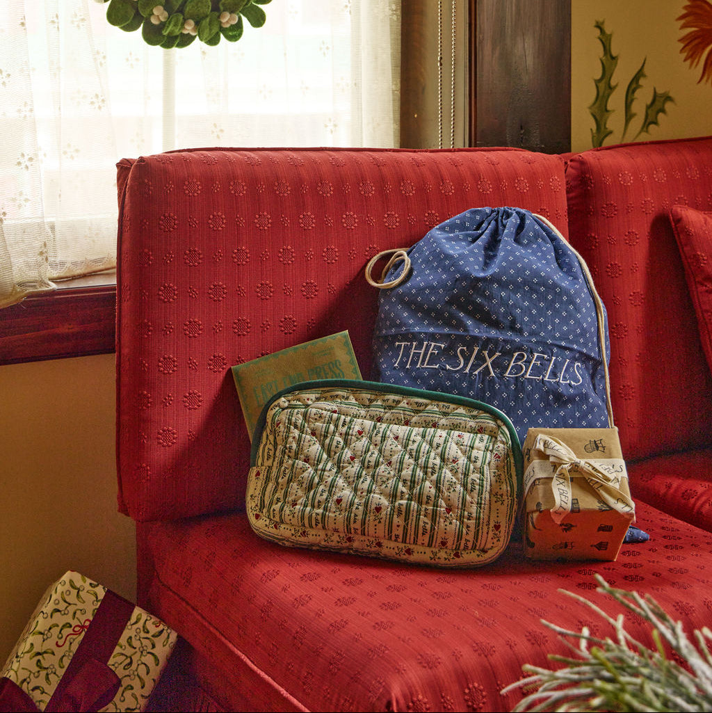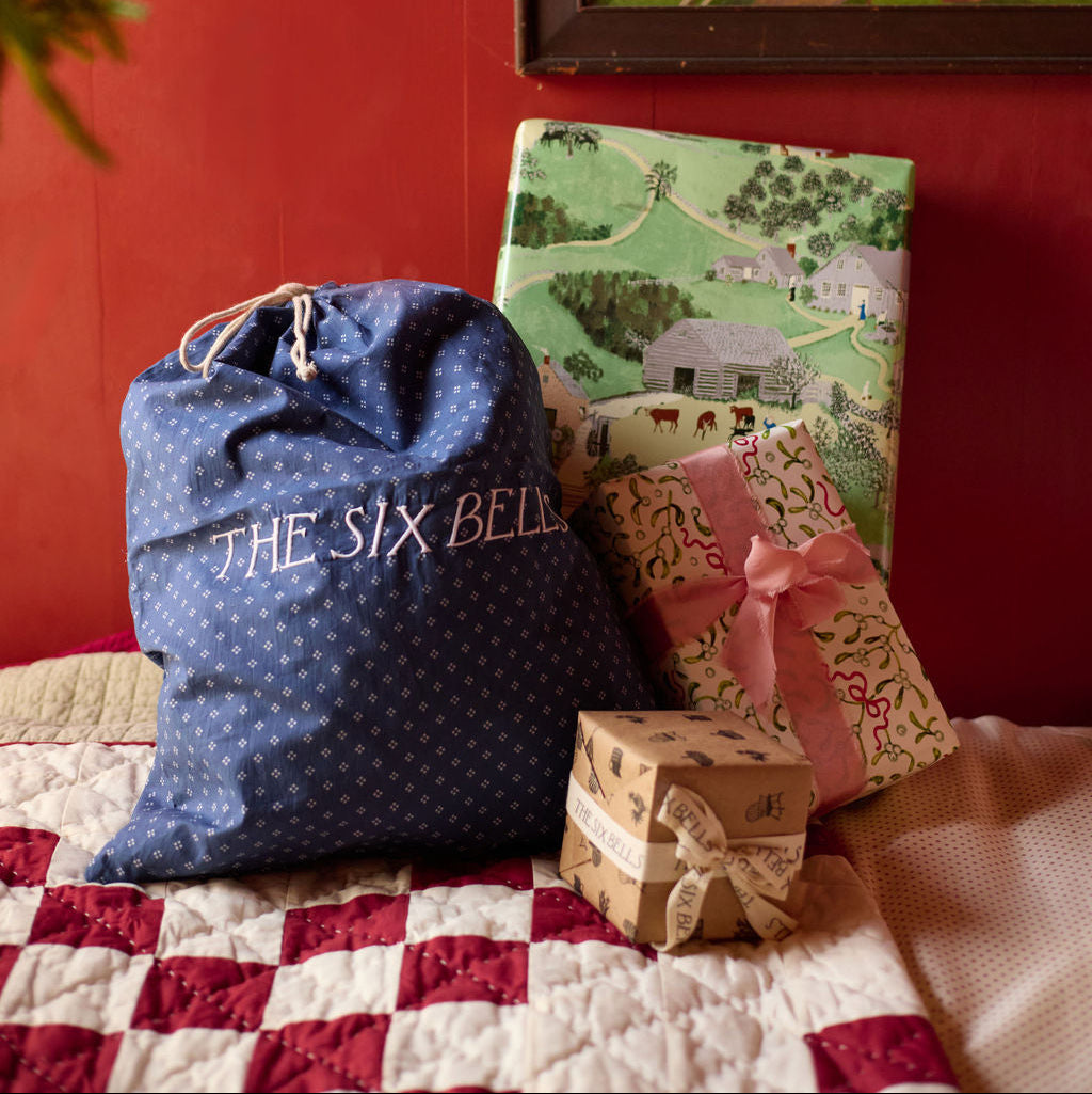 A reusable drawstring bag made from 100% cotton in our signature blue dotted diamond fabric. Perfect for adding a charming touch to your gift-giving and useful for storing keepsakes long after the gift has been opened.
