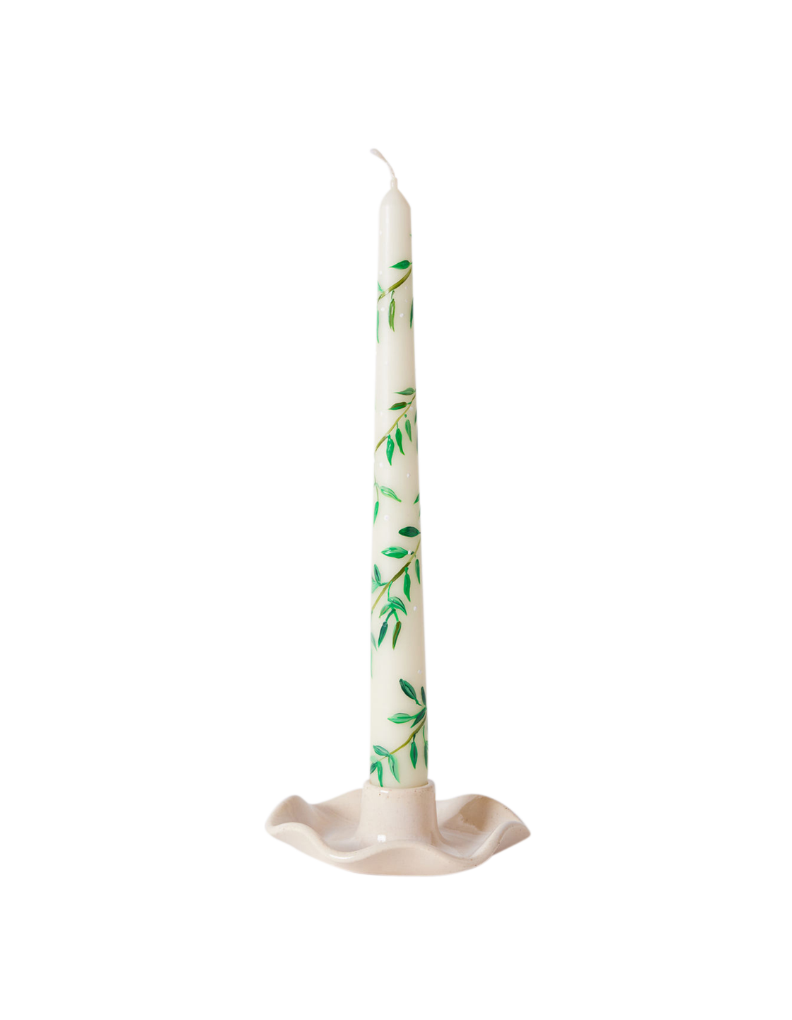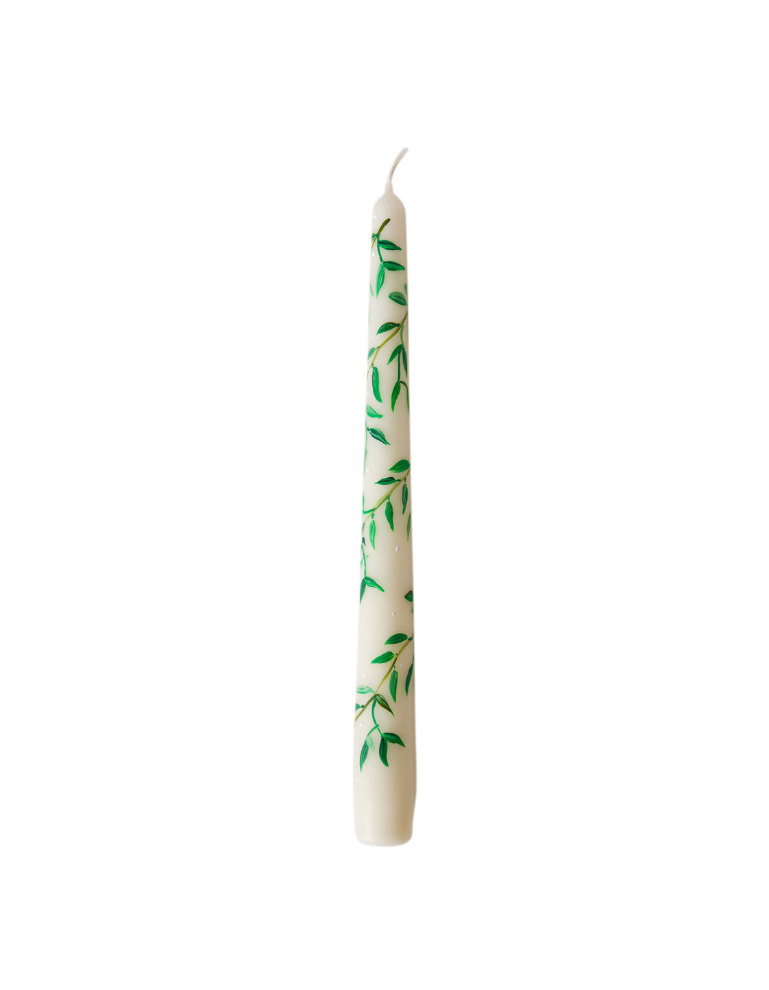 Whimsical ivory taper hand-painted with delicate baby's breath branches.
