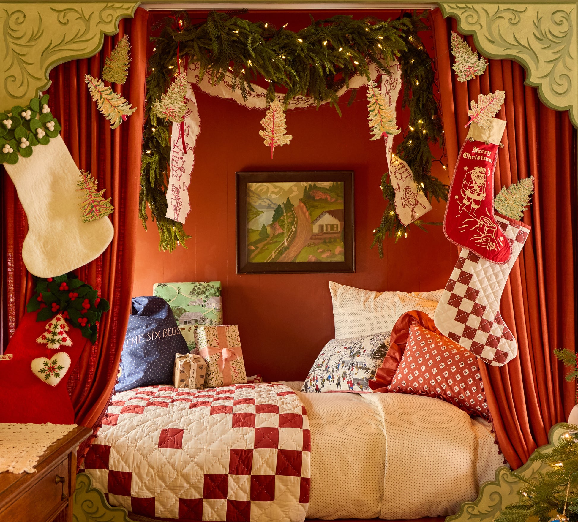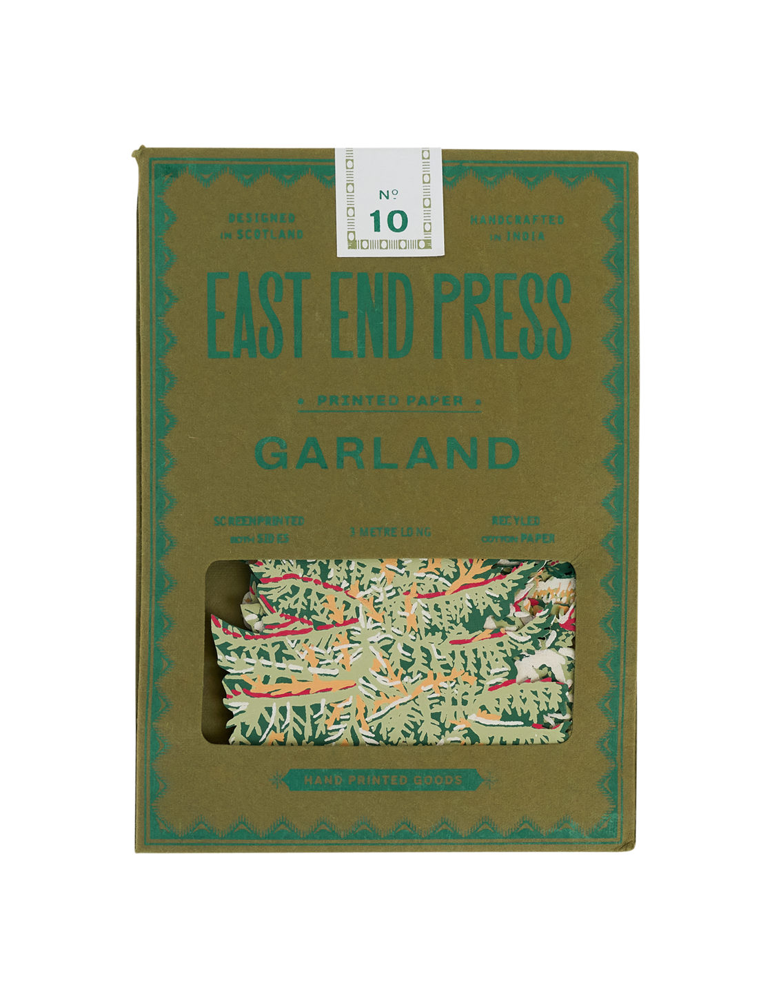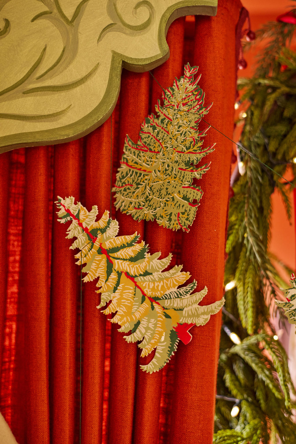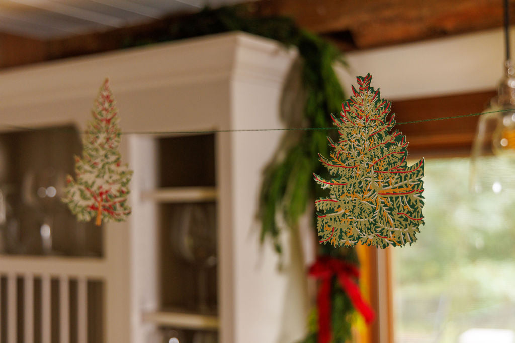 In muted yellow tones and forest greens, this garland brings the outdoors in. It features ten double-sided, hand-printed fir trees elegantly strung along a ten-foot long string.