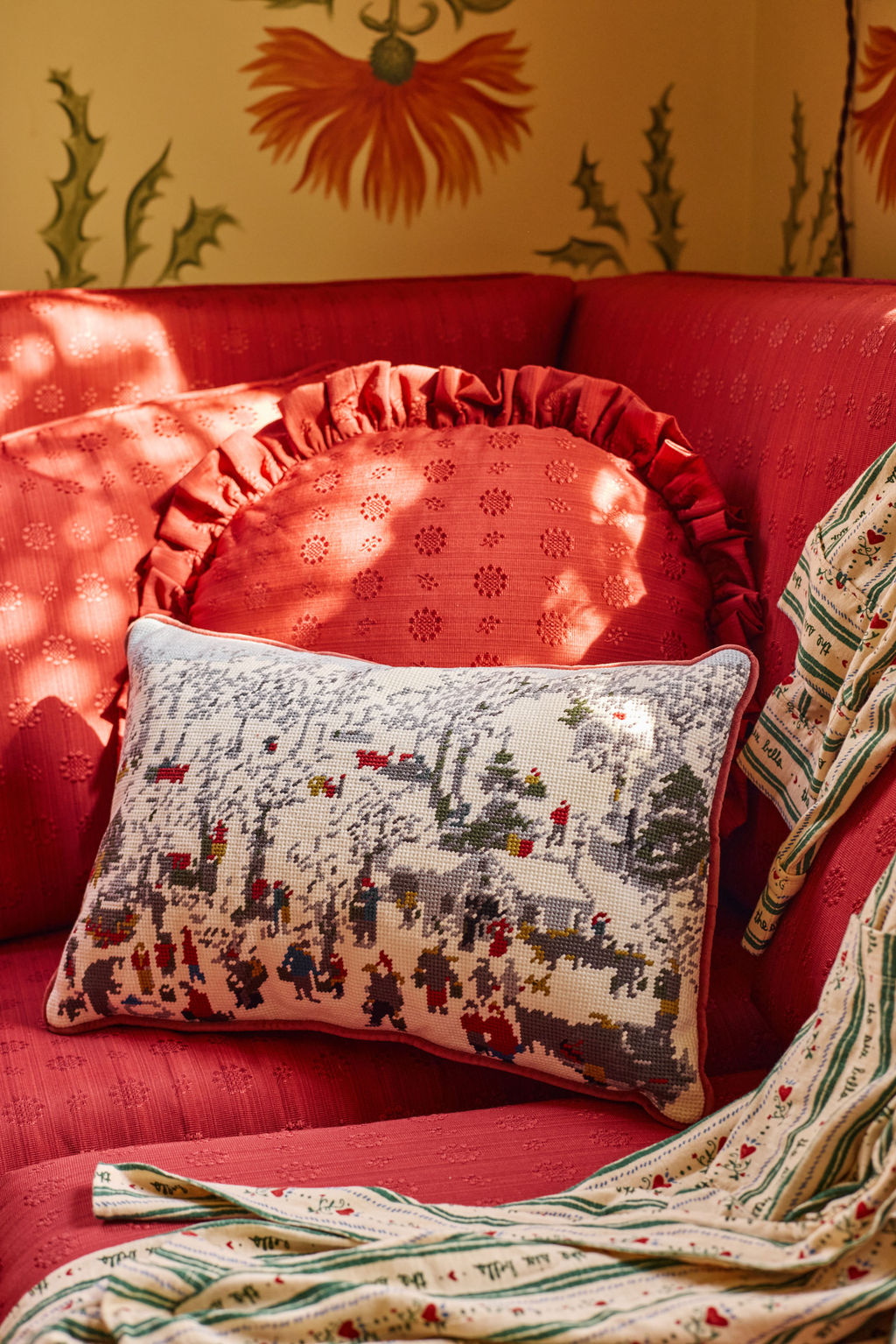Grandma Moses 'Sugaring Off' Needlepoint Pillow