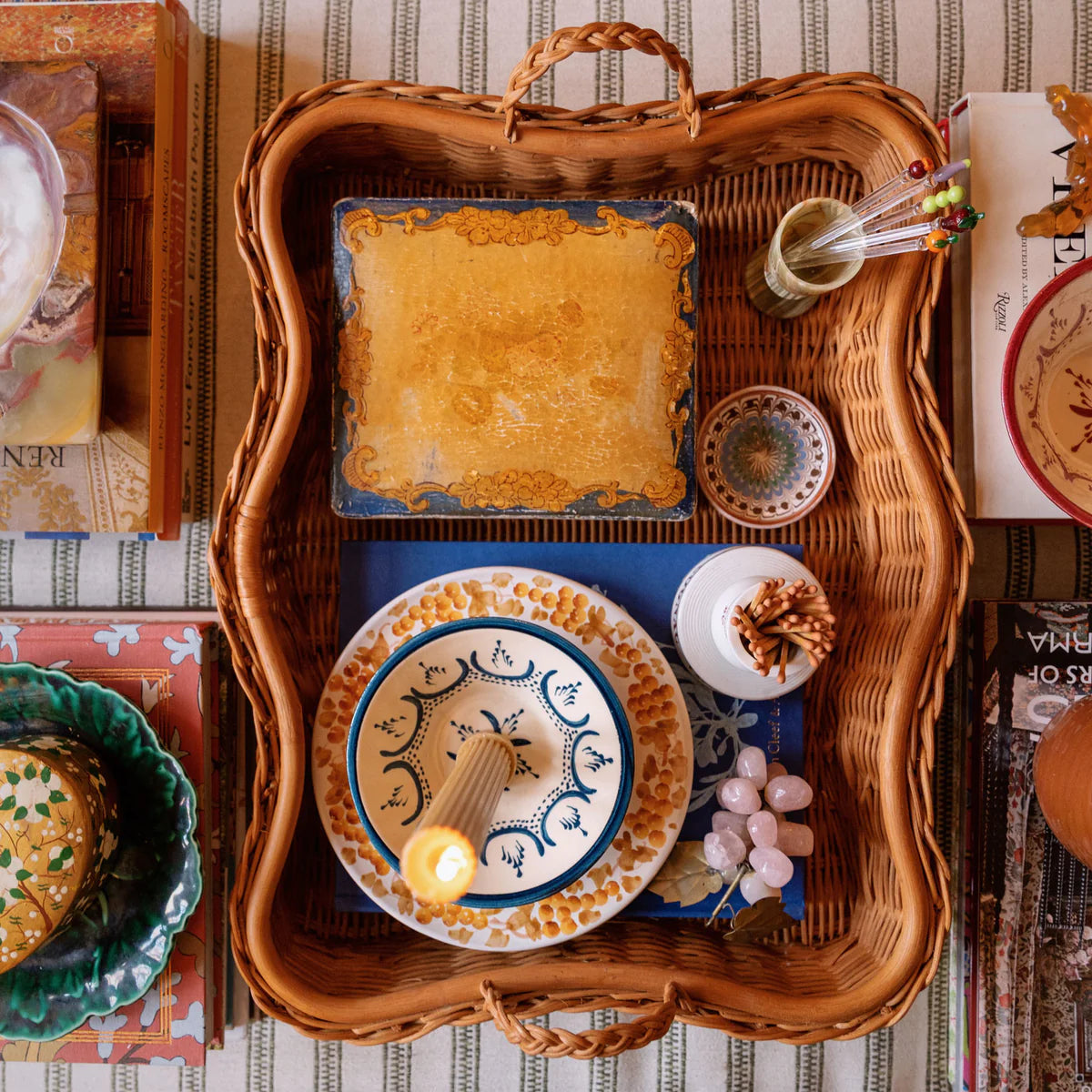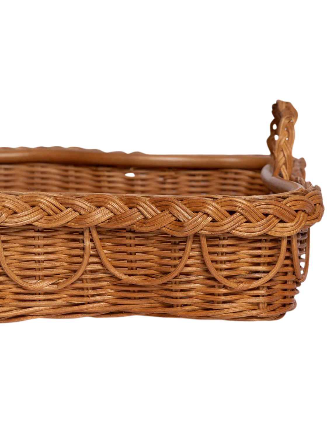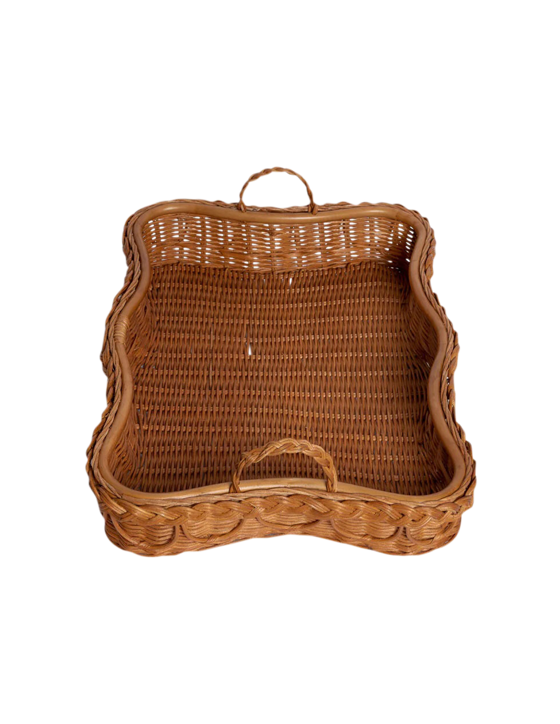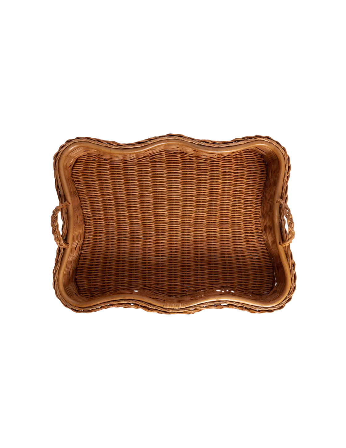 Handcrafted from 100% natural rattan, the Hadley tray features fixed handles and a beautifully braided, scalloped edge. It’s the perfect way to serve cocktails at sunset, enjoy a TV supper, organize your coffee table, or perhaps even increase your chances of breakfast in bed.