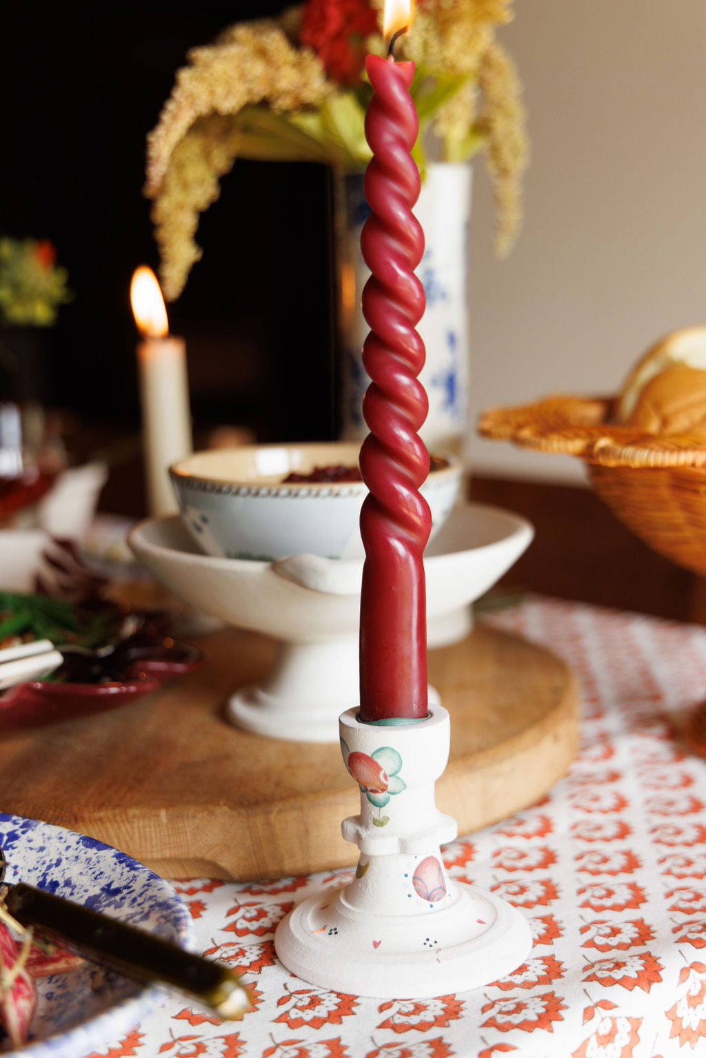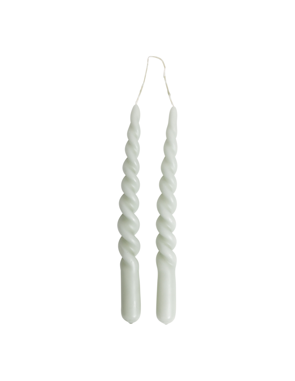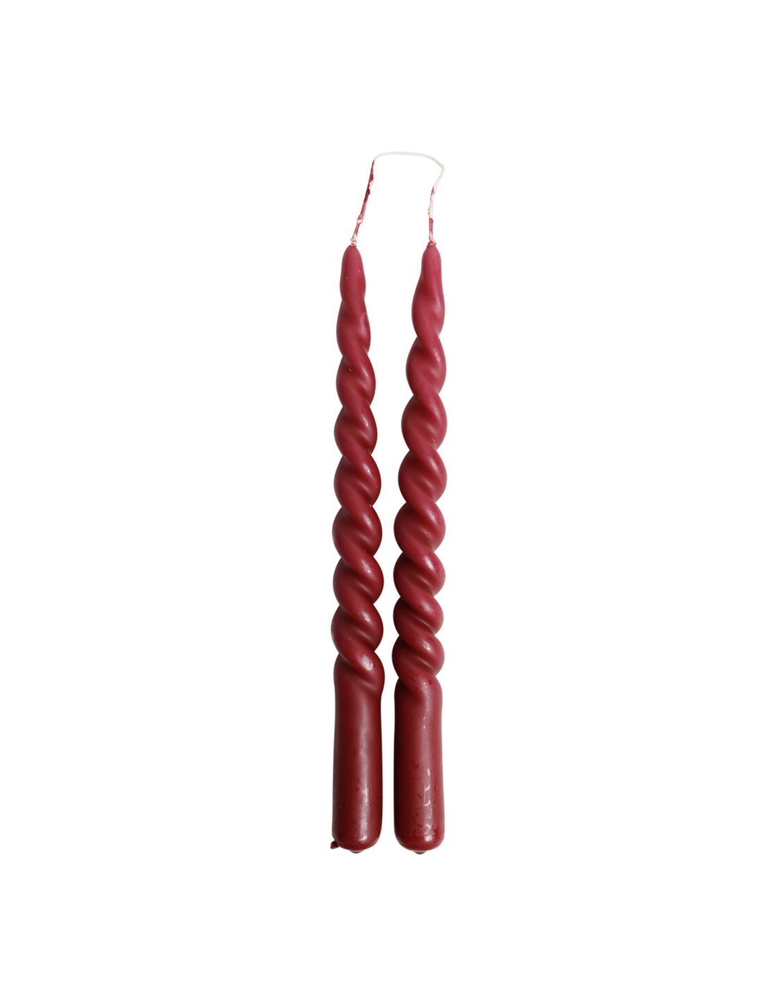 A handmade twisted candle duo available in three color ways, perfect for adding a warm glow to your tablescapes, mantels, and living rooms.