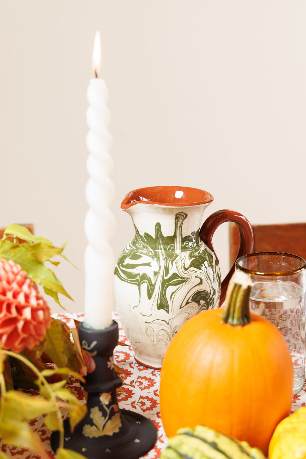 A handmade twisted candle duo available in three color ways, perfect for adding a warm glow to your tablescapes, mantels, and living rooms.