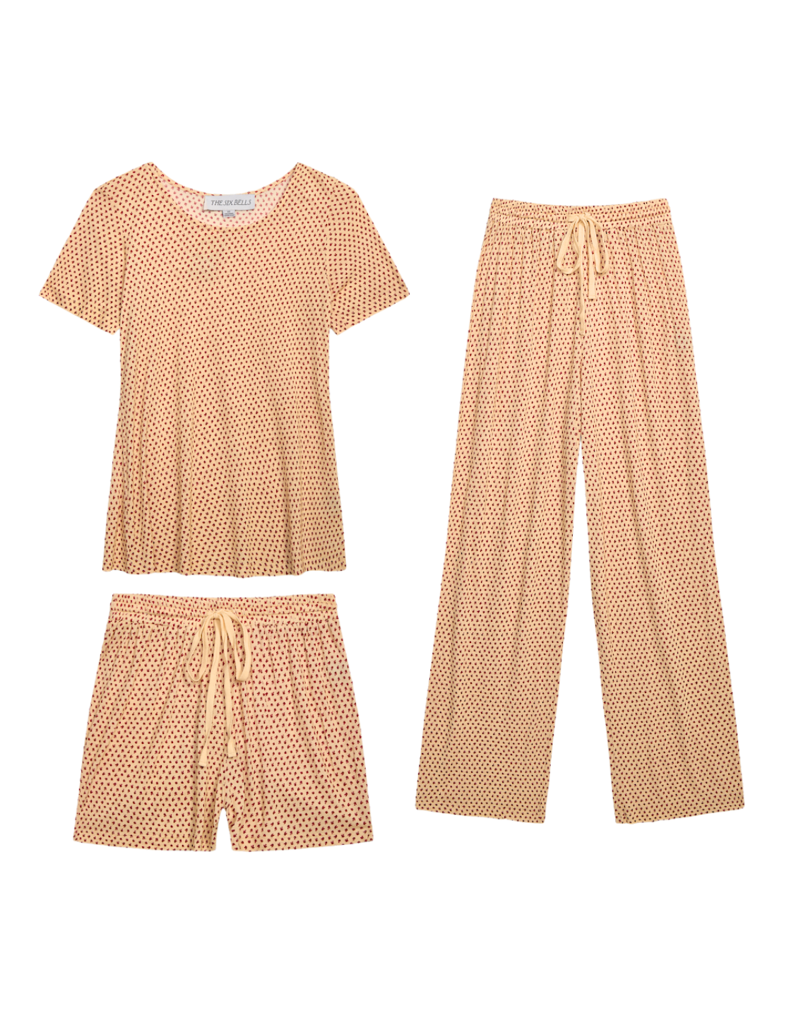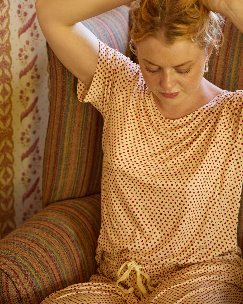 Inspired by Hudson Valley hedgerows and overgrown gardens, our sleepwear brings a touch of countryside charm to bedtime. This 3-piece set includes a soft tee, breezy shorts, and relaxed pants—perfect for lounging and living in all season long.
