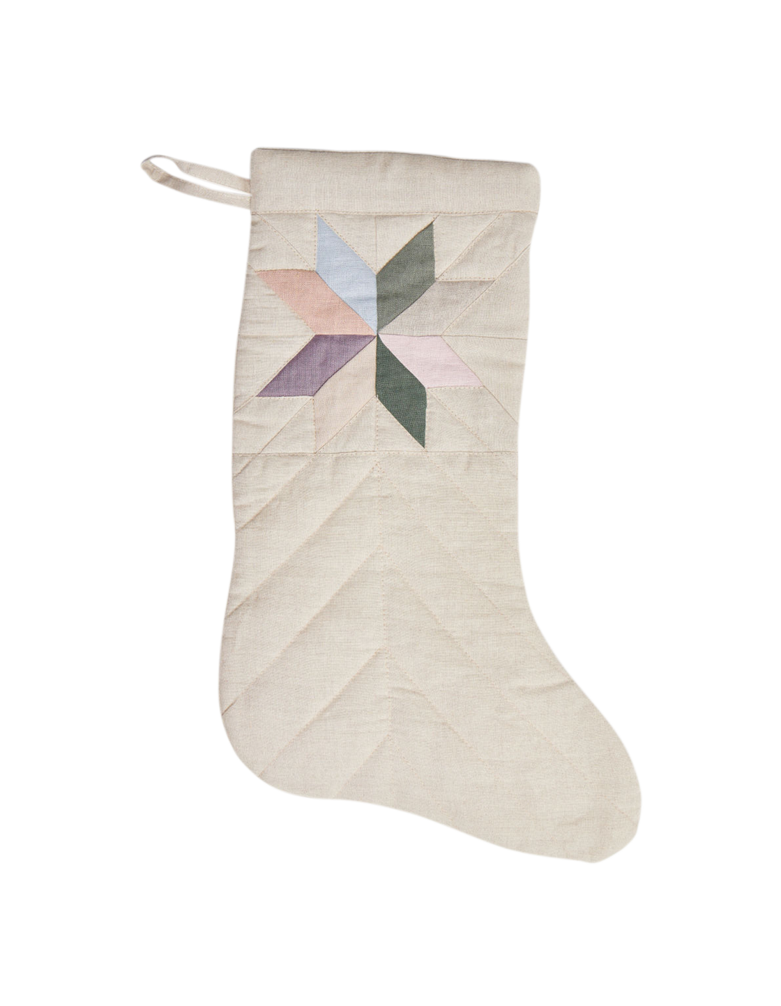 Everybody knows the best part of opening gifts is the stocking stuffers. Hang this patchwork one at the start of the season, and wait to see what Santa brings!