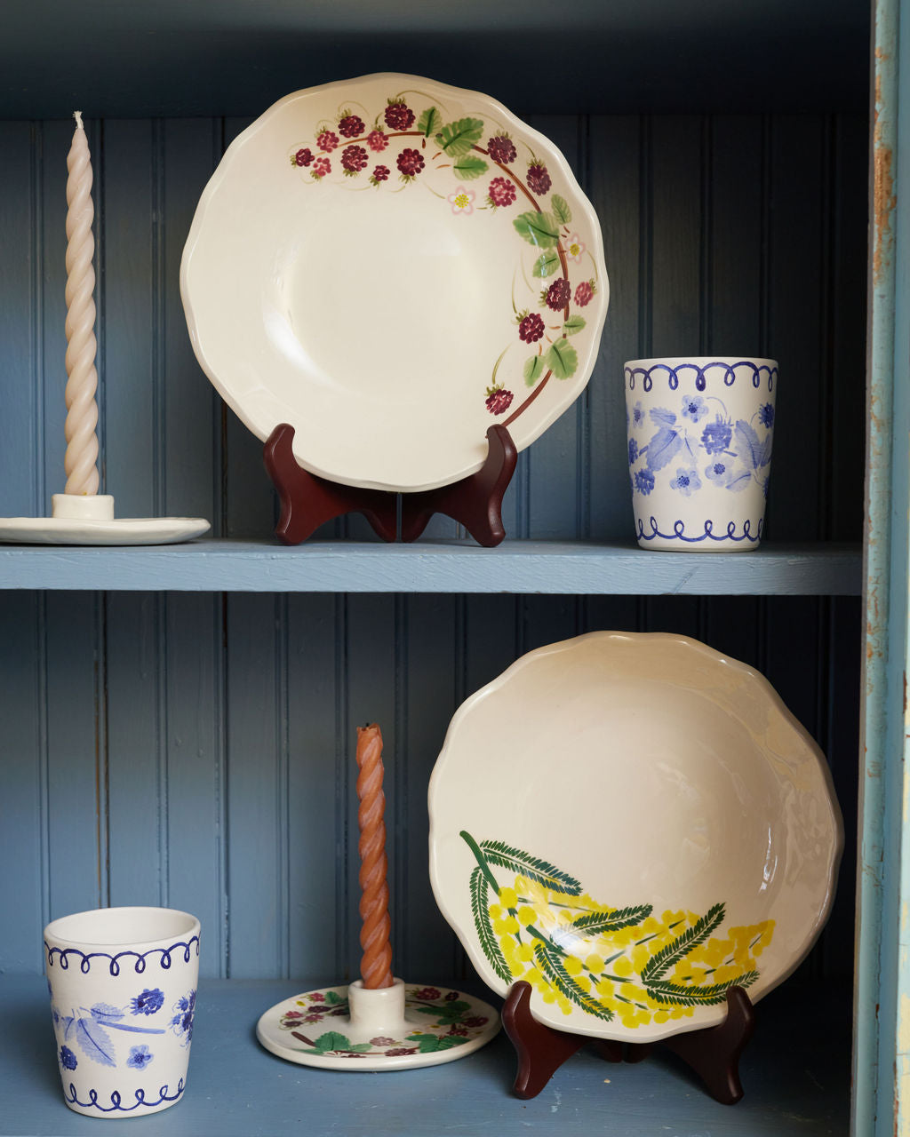 Born in Hackney, East London and raised surrounded by her creative mother and grandmother, both seamstresses and set designers, set Minnie-Mae Stott up for a creative future. After studying printed textiles at Loughborough, she worked as a studio manager for Cressida Bell, learning and mastering new design skills along the way. After she and her partner Orson opened Urchin Wines, an art gallery, wine shop and restaurant in Margate, a seaside town in Kentish, UK and giving birth to her son Vincent, Minnie-Mae took up ceramics to rediscover her creative calling. Inspired by British seaside landscapes, London history, Greek mythology, and Italian kitsch, her hand-crafted ceramics are designed to evoke nostalgia and empowerment, whilst focusing on classical design.