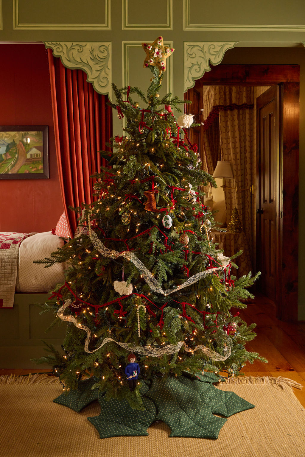 Try it on yourself first - it’s that cute! Then dress up your tree, the true star of the season, with this whimsical, mistletoe-shaped tree skirt.