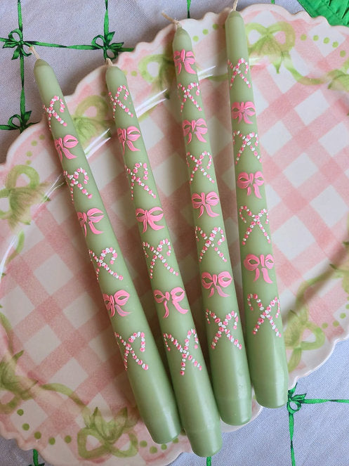 Each bow and candy cane is hand-painted on this whimsical taper candle. Light it to add a festive glow-or keep it as the little work of art it truly is.