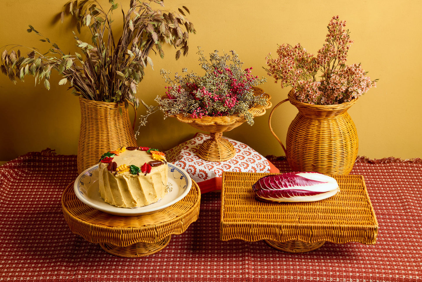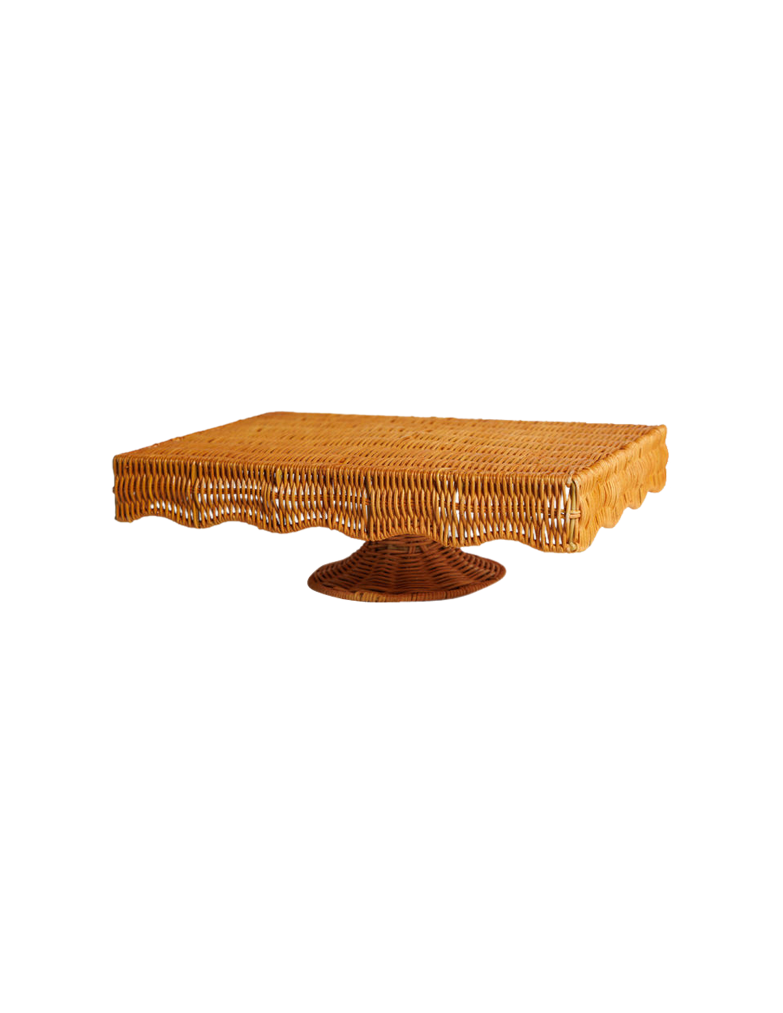Handcrafted from 100% natural rattan with a scalloped edge, this rustic cake stand adds warmth and texture to any kitchen or dining area. Perfect for showcasing cakes and pastries, or as a stylish accent on its own.