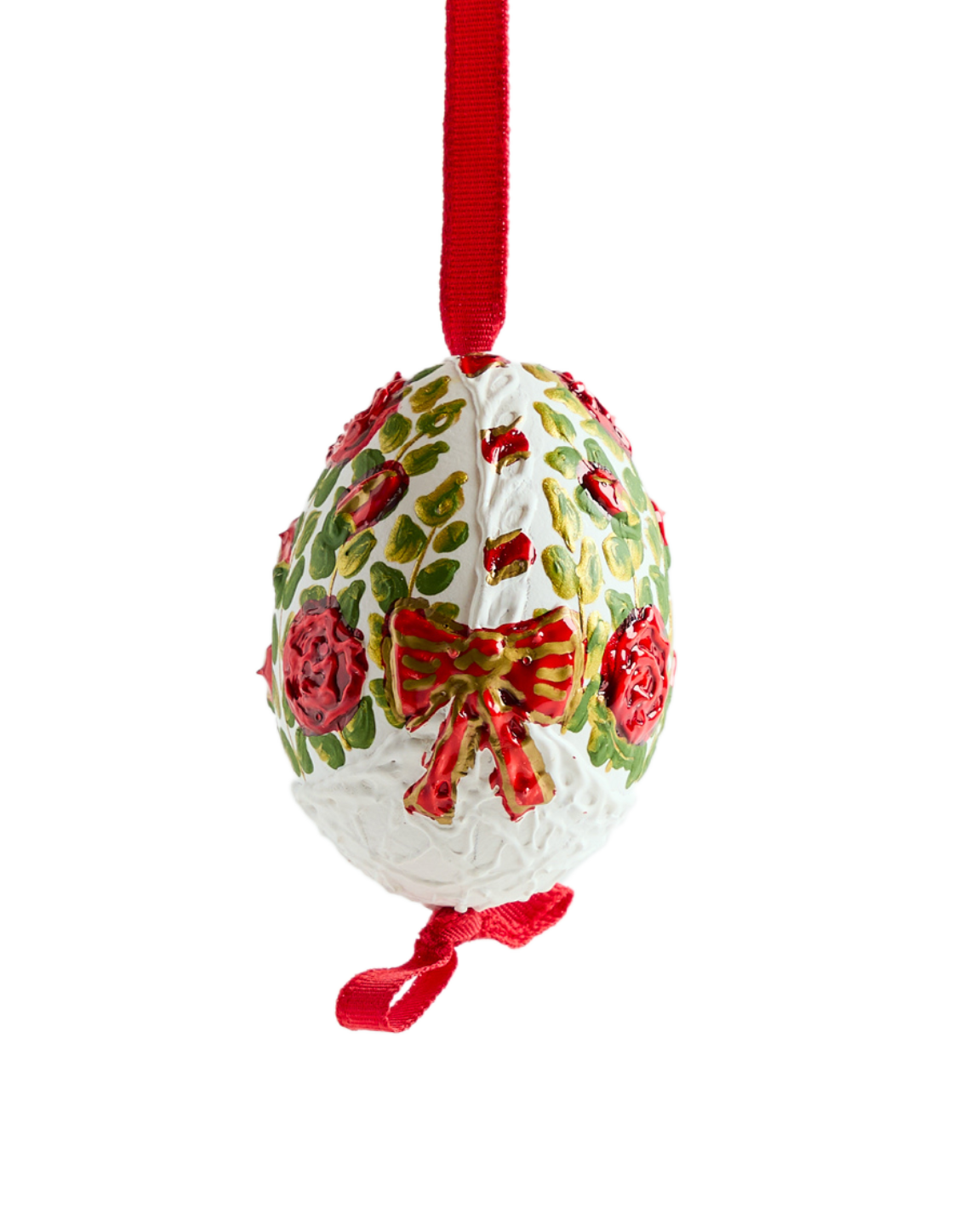 These delicately painted egg ornaments feature ornate lines and bright colors. Hand painted in Salzburg, Austria, they bring a whole new world to your holiday tree.