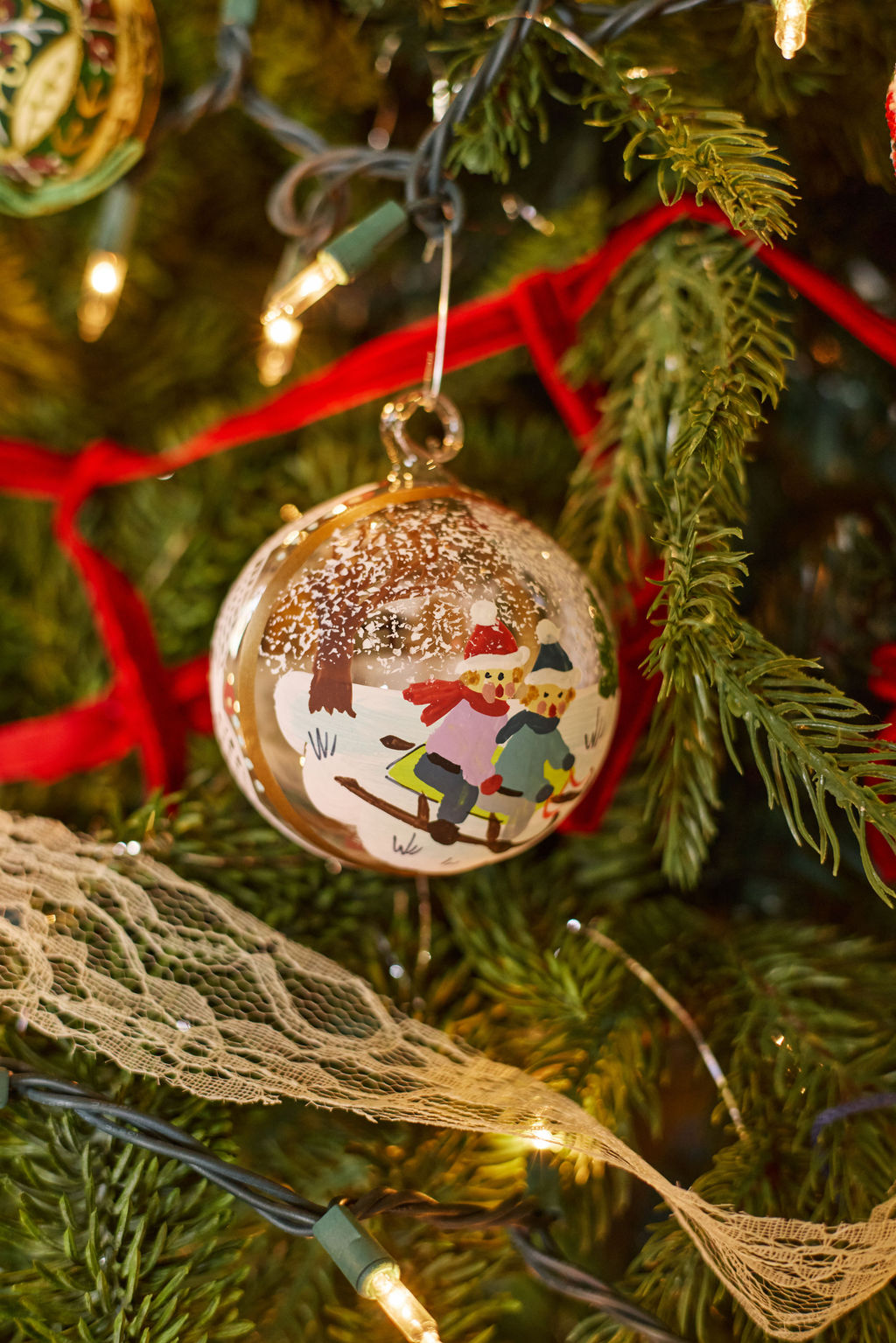 Please note that the ornament does not come with a string. Personalize it with your own ribbon, twine, or string for hanging. As each ornament is hand-painted, designs will vary from the product pictured.