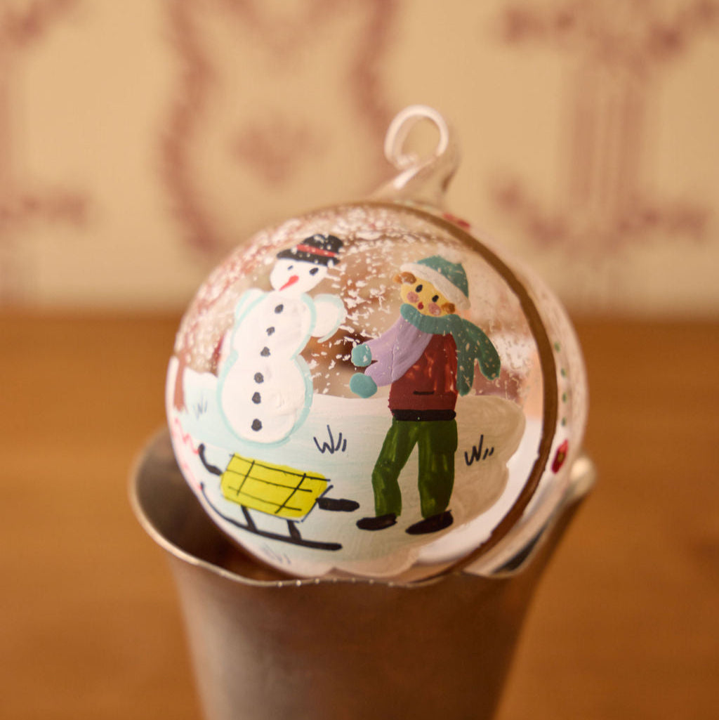 Snowy Scene Painted Glass Ornament