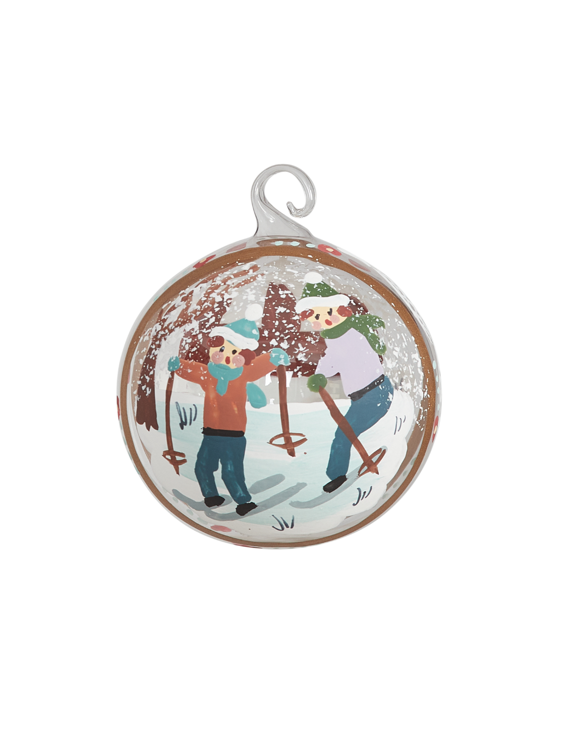 This delicately painted glass ornament features a sweet wintery scene. Hand painted in Salzburg, Austria, they bring a whole new world to your holiday tree.