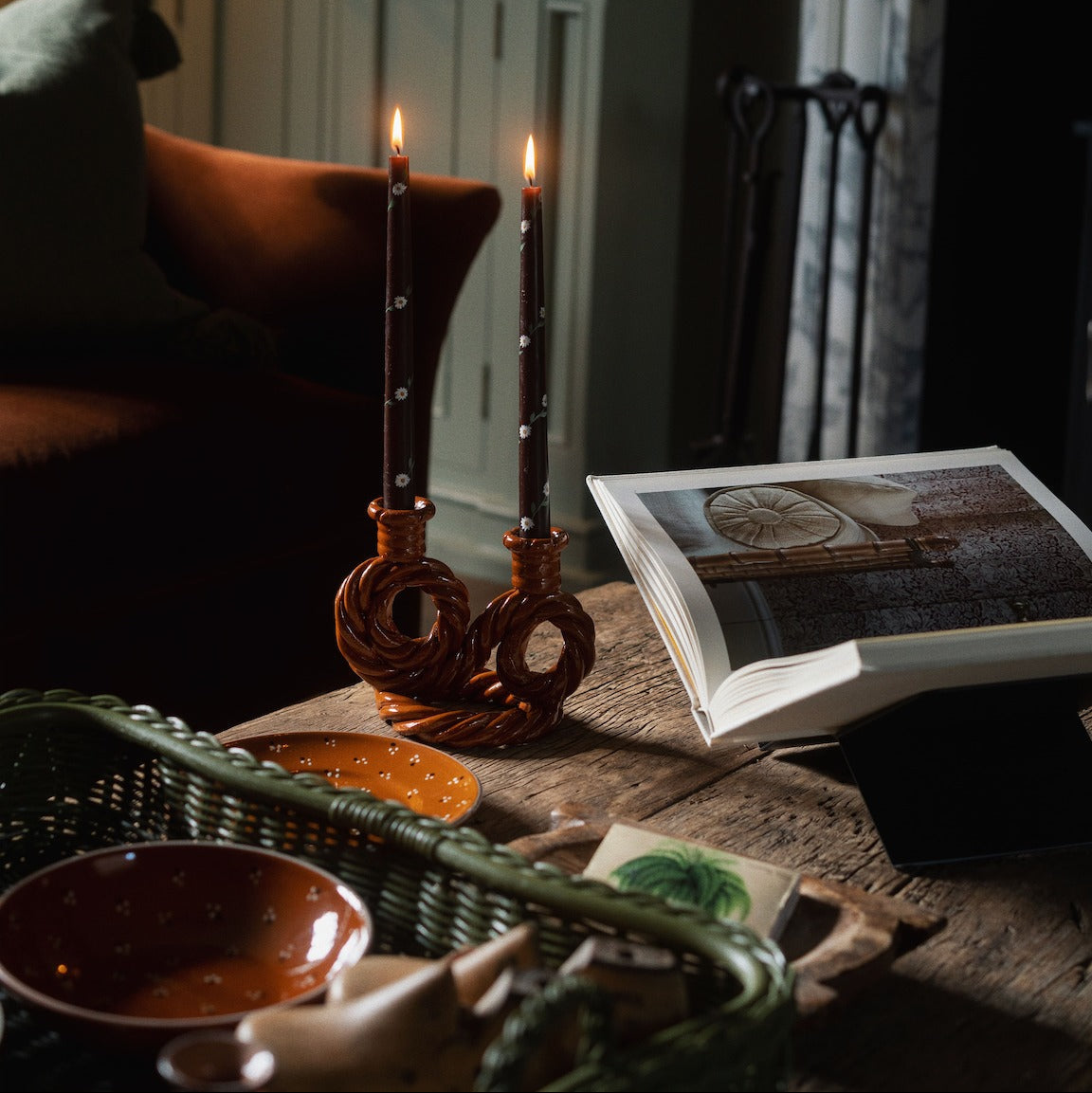 Handcrafted candle holder with a stunning twisted rope design. Pairs beautifully with our hand-painted candles for an extra touch of charm.