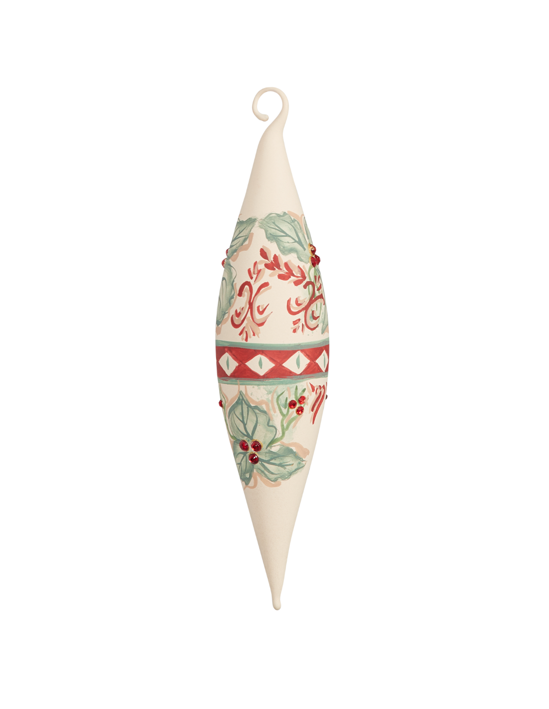 Please note that the ornament does not come with a string - personalize it with your own ribbon, twine, or string for hanging. As each ornament is hand-painted, the design may vary slightly from the product pictured.