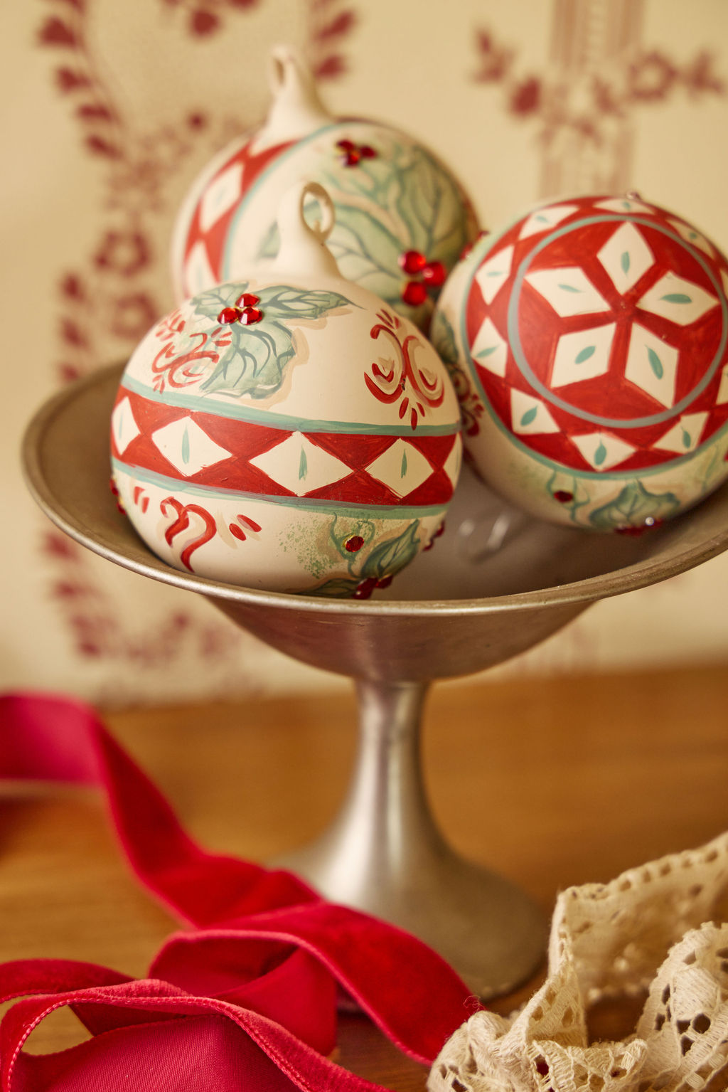 Please note that the ornament does not come with a string - personalize it with your own ribbon, twine, or string for hanging. As each ornament is hand-painted, the design may vary slightly from the product pictured.