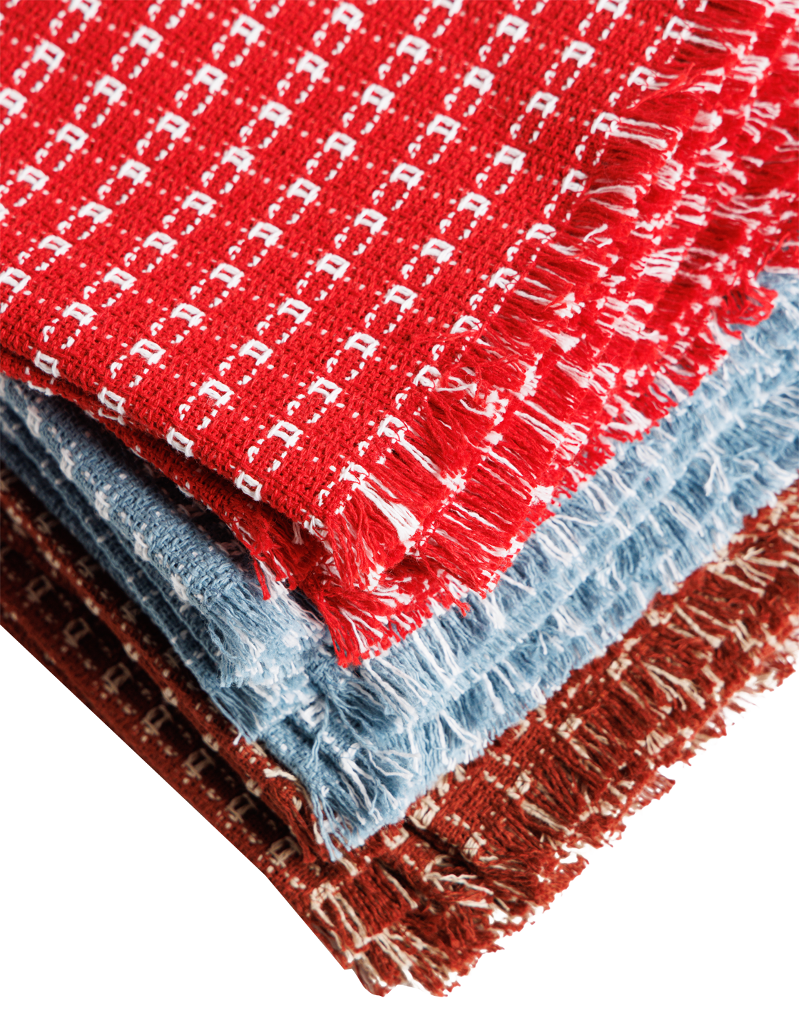 Every piece from this collection is cut, sewn and hand-fringed with care in Lancaster County, Pennsylvania, where the family-owned factory has been sewing table linens for nearly half a century. American cotton yarn is selected for the same strength, weight and durability of generations past—and woven to the highest standards by master weavers on traditional looms.