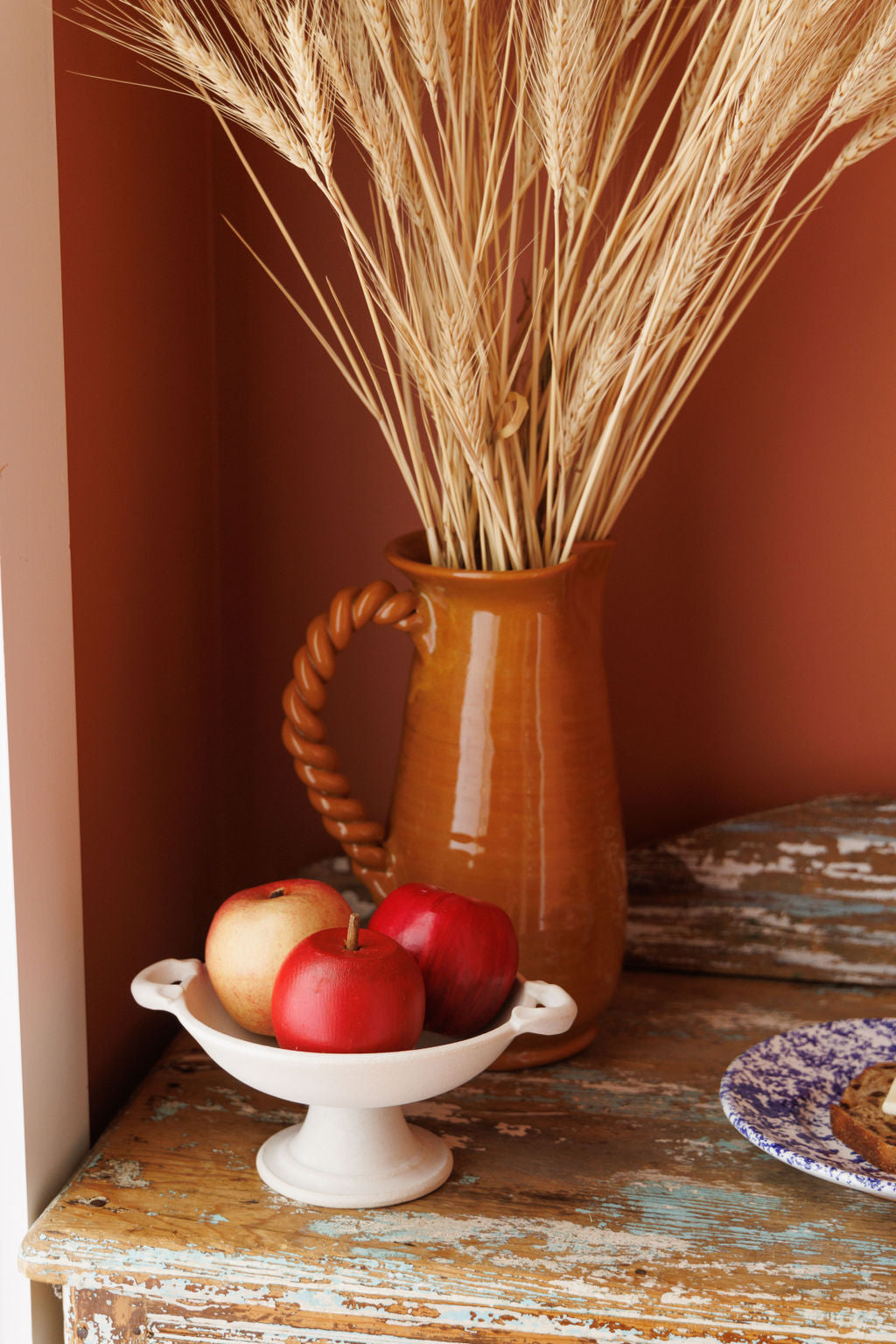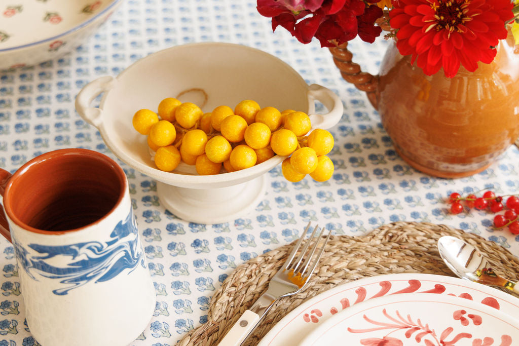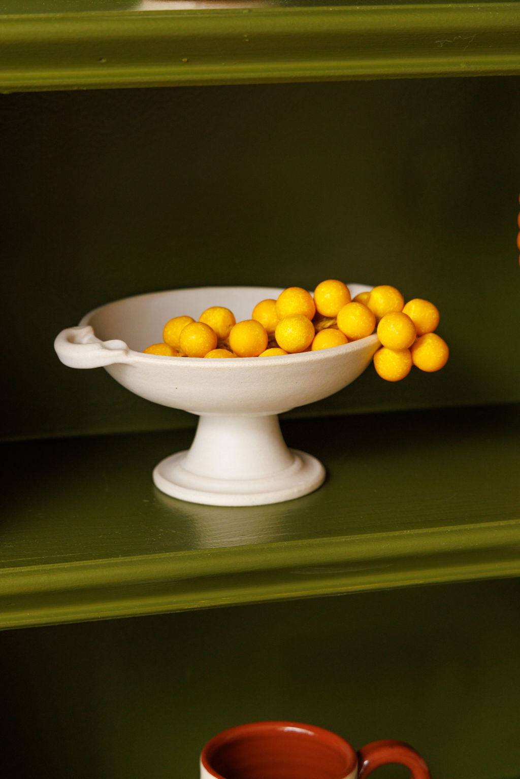 Charlotte McLeish's pieces are influenced by historic ceramics, 16th and 17th century painting, and British folk art.