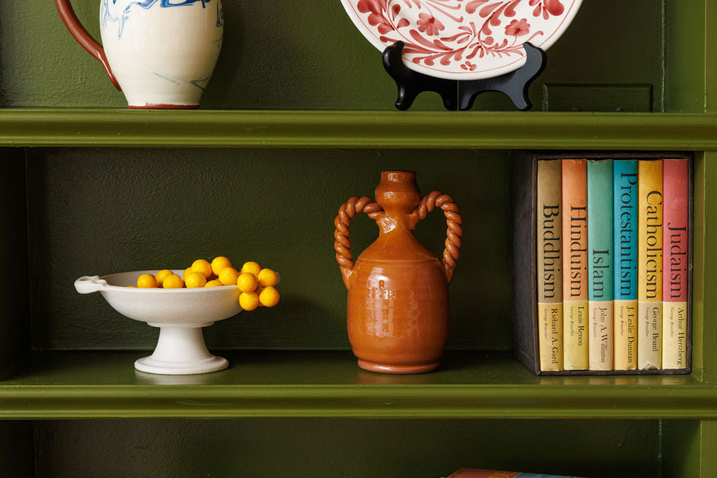Charlotte McLeish's pieces are influenced by historic ceramics, 16th and 17th century painting, and British folk art.