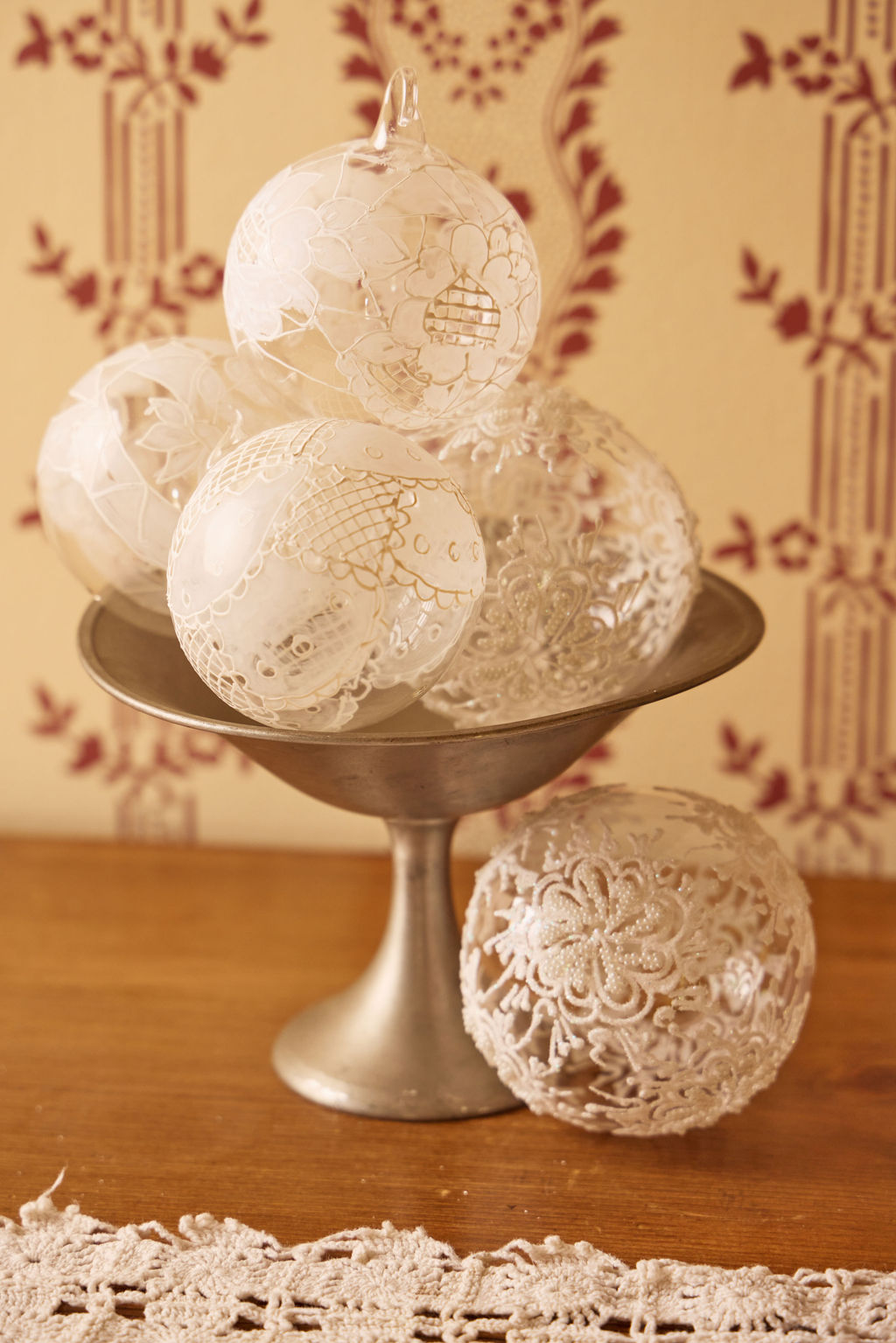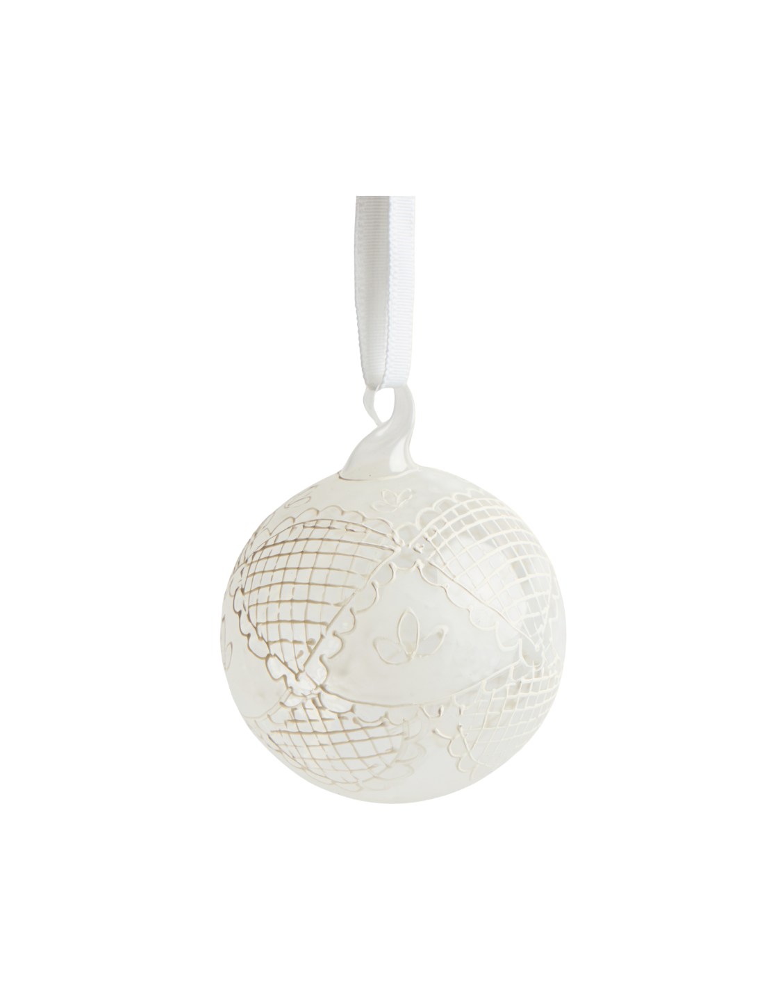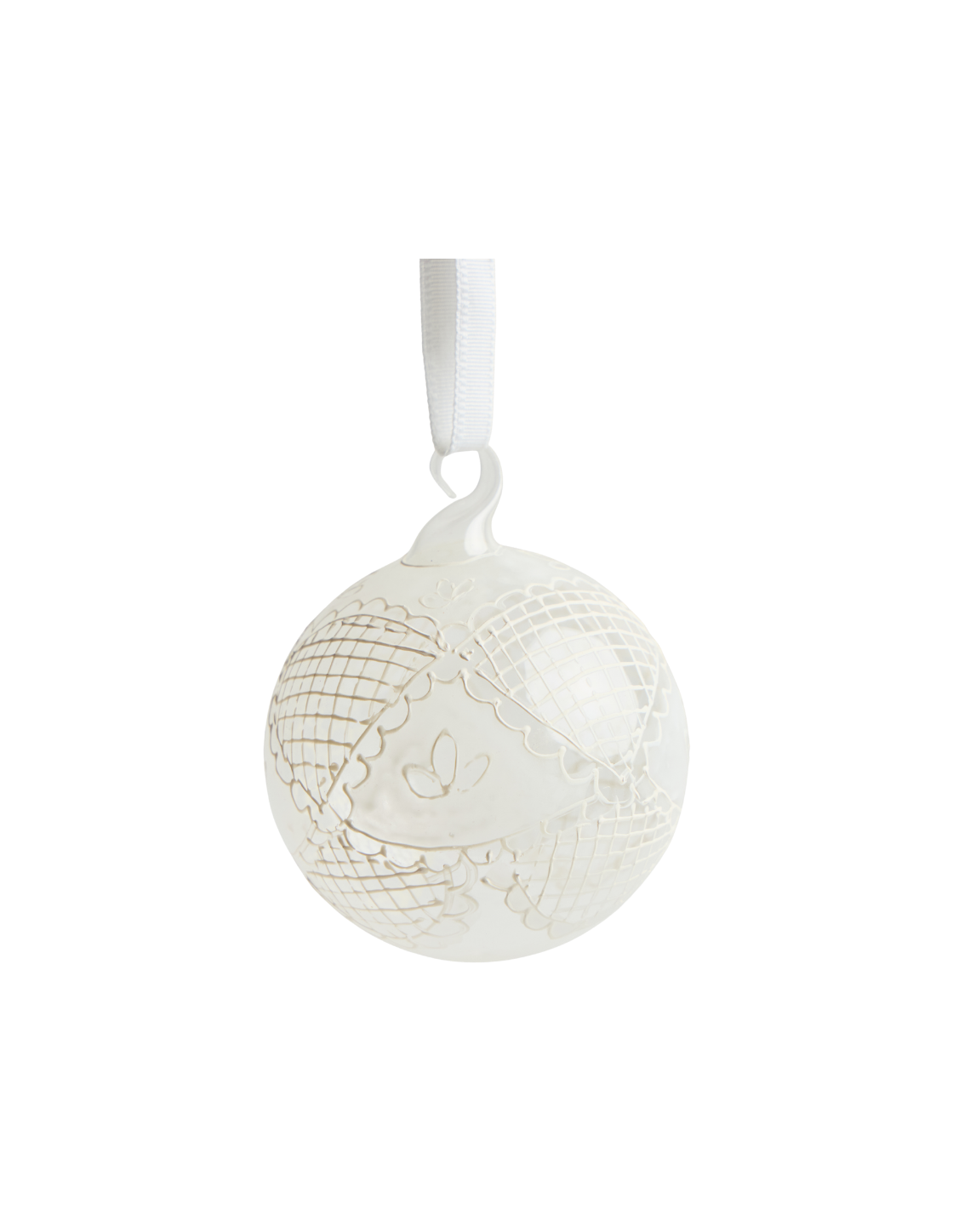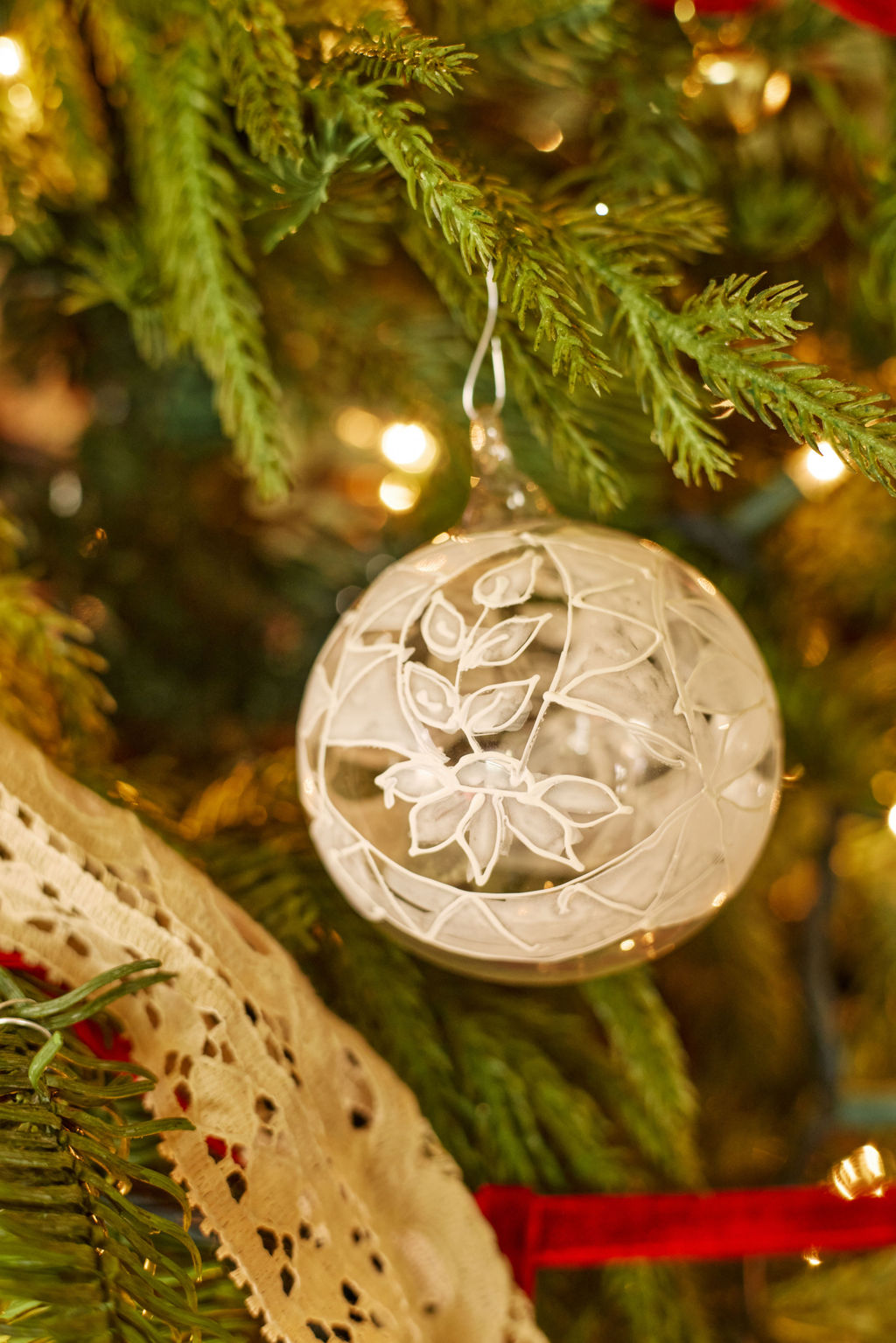 This glass ornament features elegant lace accents. Hand-crafted in Salzburg, Austria, they add a touch of old-world charm and bring a whole new world to your holiday tree.